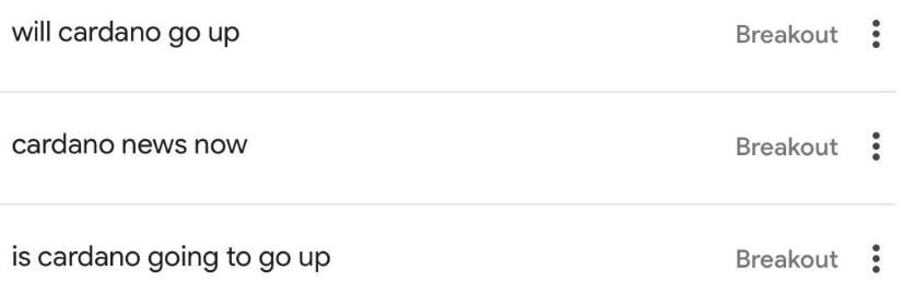 Parece que as pessoas estão ficando curiosas novamente, e se há uma coisa que sabemos sobre a multidão criptográfica é que a curiosidade muitas vezes leva ao caos. TapTools está mostrando um aumento acentuado nas pesquisas do Google, como “o Cardano vai subir” e “notícias do Cardano agora”. Adivinha? Quando a Internet fica tão entusiasmada, geralmente significa que estamos à beira de uma boa e velha volatilidade. O sentimento do varejo está mudando, e isso significa que muitas pessoas estão pensando em embarcar neste trem Cardano – que está indo direto para a lua. 🚀