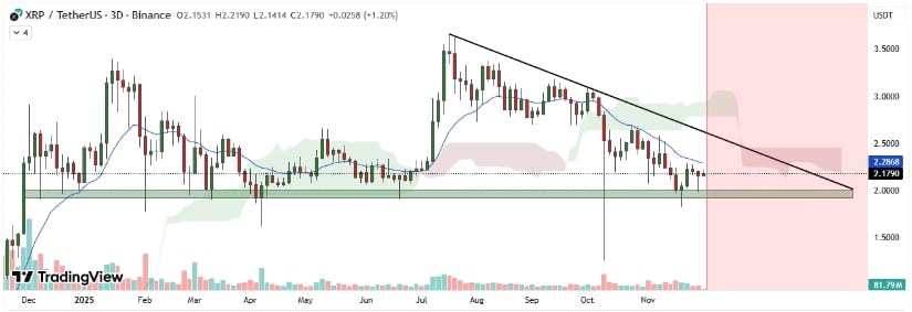 Dados do TradingView? Uma carta de amor a US$ 1,90, um preço que assombra os mercados desde o final de 2025. O XRP, depois de recuar de seu pico de setembro de US$ 2,85 (um valor que a maioria dos mortais nunca alcança), agora se agarra à vida como um bêbado a um poste de luz. 🕯️