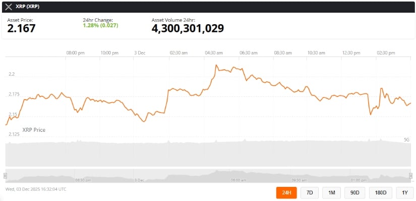 O XRP, aquela raposinha astuta, é negociado hoje perto de US$ 2,16, alta de 1,28%, como se estivesse zombando dos céticos. US$ 4,3 bilhões em volume? Um banquete tanto para os gananciosos quanto para os crédulos. Poderíamos chamar-lhe “estabilização”, mas sejamos honestos: é apenas a moeda a faltar ar antes do seu próximo colapso melodramático. 🎭📉