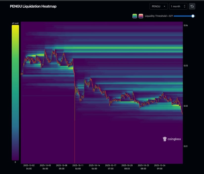 Se os compradores defenderem o suporte de US$ 0,018 e recuperarem US$ 0,020 de forma convincente, o PENGU poderá encenar uma recuperação de alívio em direção a US$ 0,024 a US$ 0,025. Até lá, a paciência continua a ser fundamental – as próximas sessões determinarão se esta queda evoluirá para uma consolidação a longo prazo ou desencadeará o início de uma recuperação técnica. 🧠
