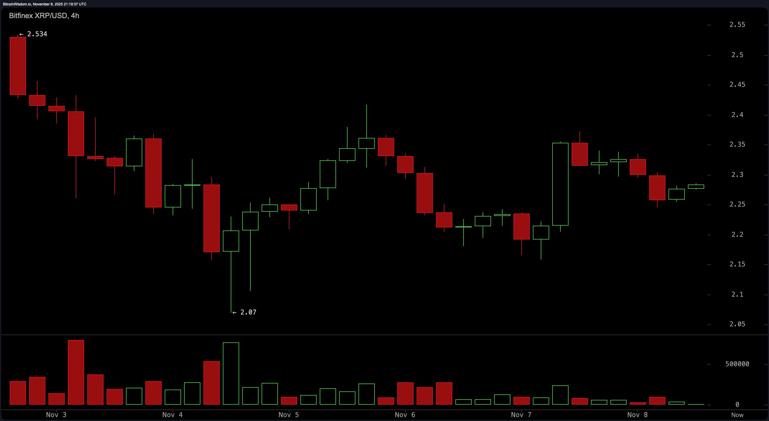 No dia 8 de novembro de 2025, XRP acordou não com o vigor de um herói, mas com o suspiro apático de uma alma cansada. Agora empoleirado em US$ 2,28, ele segue em frente, tendo caído 2,1% hoje e 9,2% esta semana. Com uma capitalização de mercado de 136 mil milhões de dólares, um volume de transações de 3,33 mil milhões de dólares e uma dança intradiária entre 2,25 e 2,36 dólares, esta diva digital está agora 37,6% atrás do seu zénite de 3,65 dólares em 18 de julho – e parece contente em permanecer nas sombras. 🕳️
