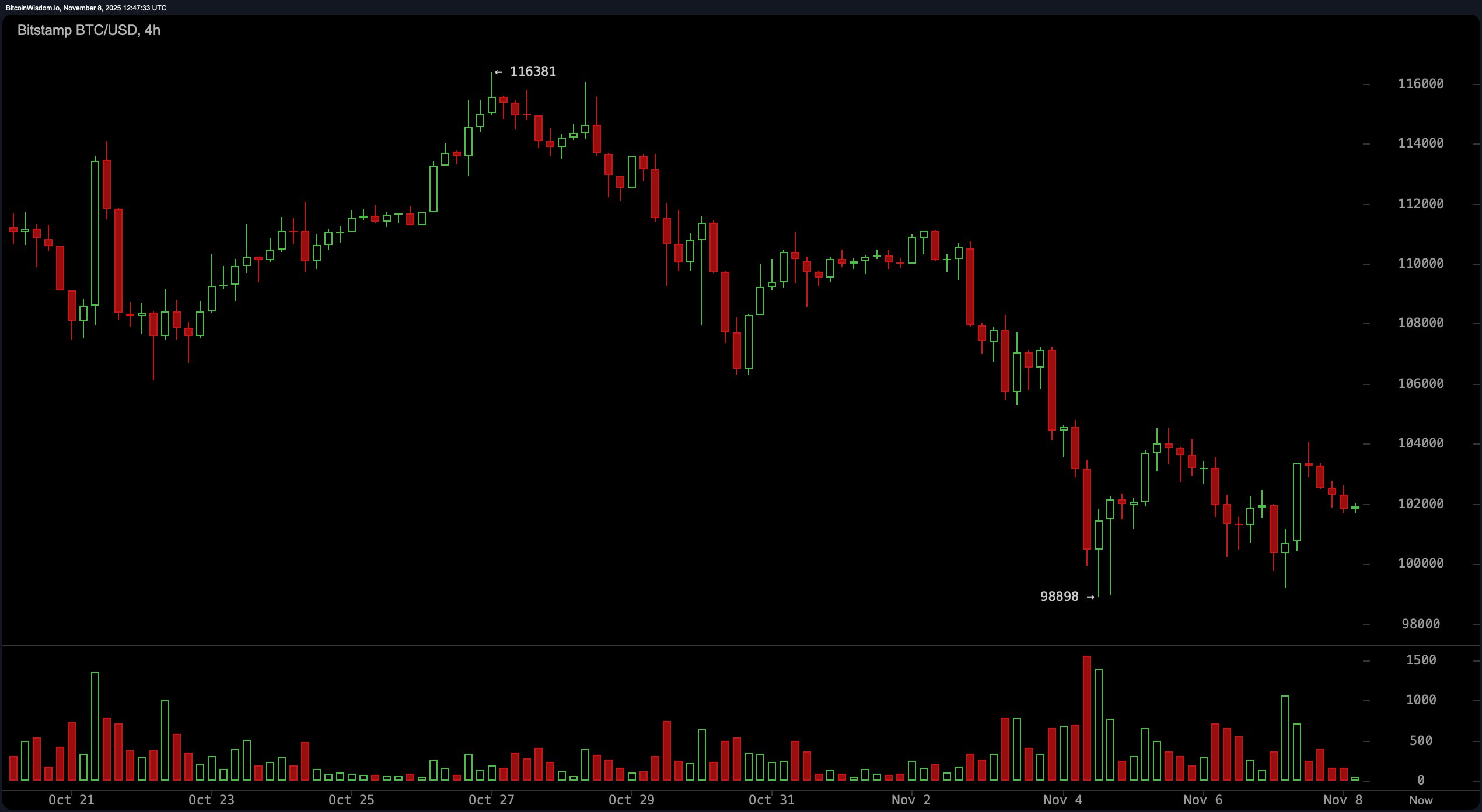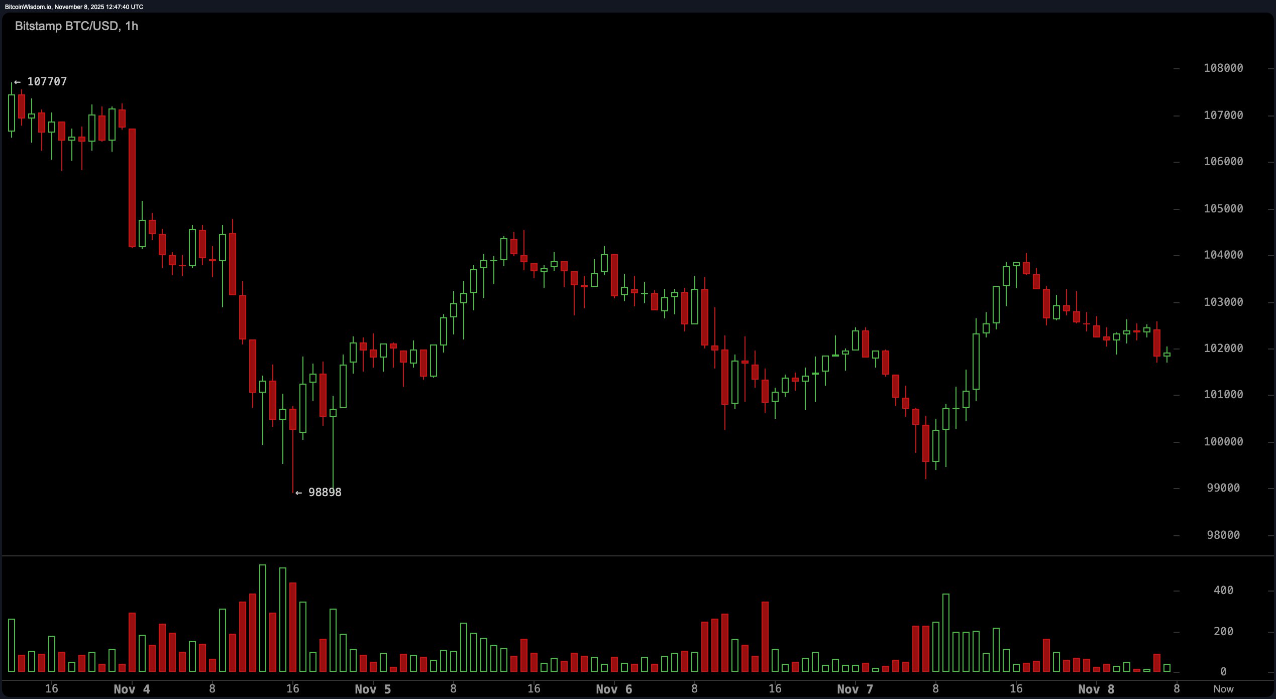 Em 8 de novembro de 2025, o Bitcoin oscilava como um equilibrista embriagado na corda bamba, custando US$ 101.987 – mais ou menos alguns milhares de dólares – enquanto a capitalização de mercado disparava para impressionantes US$ 2,03 trilhões (isso é o suficiente para comprar uma pequena lua). Volume de negociação? Uns casuais US$ 77,43 bilhões em 24 horas, porque não? O preço oscilou entre US$ 99.376,95 e US$ 103.956, como um esquilo nervoso decidindo se deveria atravessar a rua.