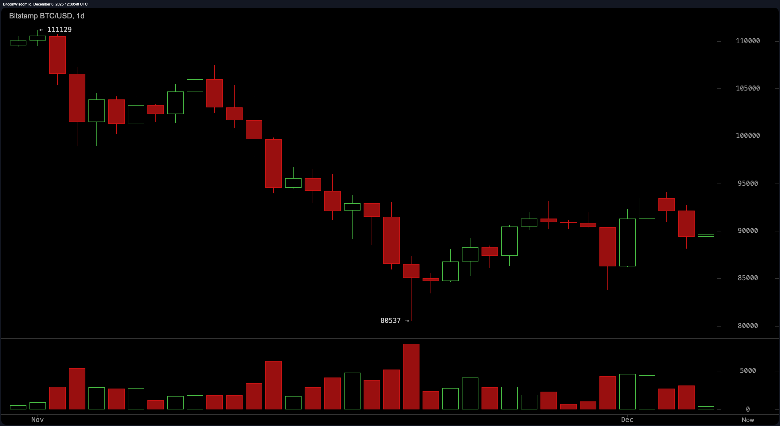 O bocejo do gráfico horário é tão desarmante quanto um minueto de salão de baile mal planejado. O Bitcoin, após uma fraca tentativa de recuperar US$ 92.600 (uma soma que certamente vale três fortunas em Hertfordshire), caiu para US$ 88.100. Agora ele serpenteia como um lacaio sonolento entre US$ 89.200 e US$ 89.900 – recatado como uma verdadeira dama em um passeio de domingo.