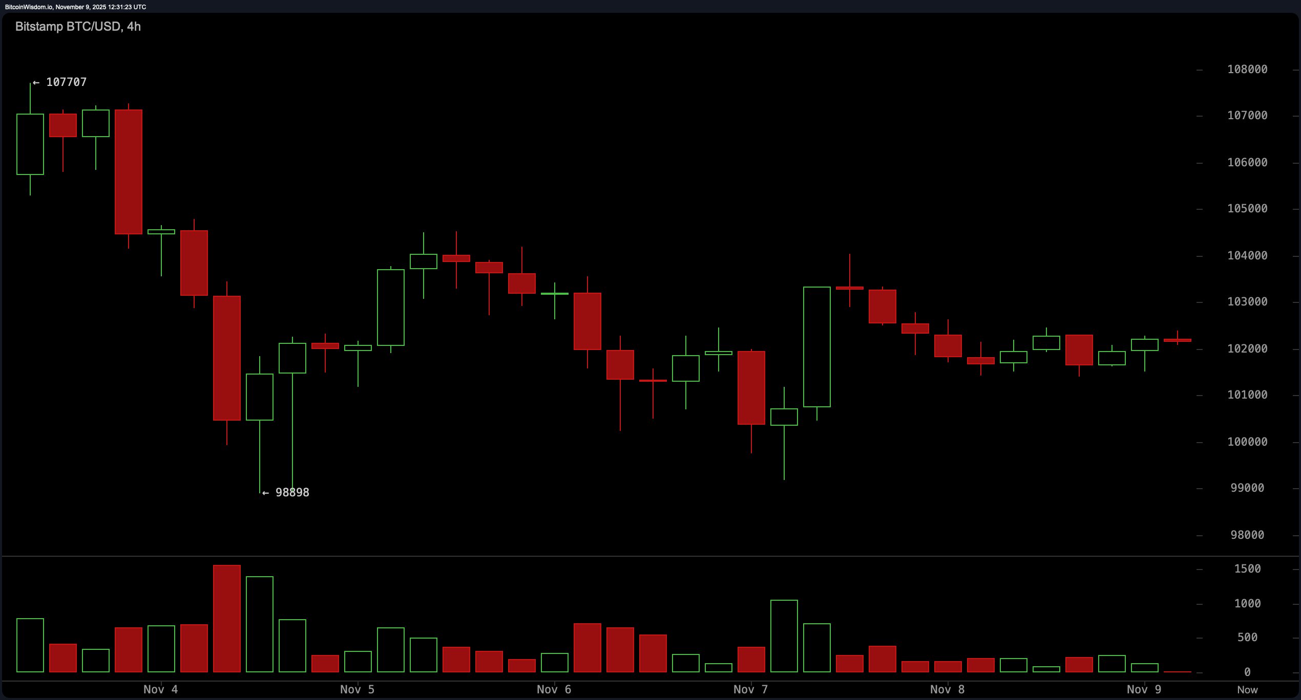 No amanhecer de 9 de novembro de 2025, o Bitcoin exibia um preço de US$ 102.326, parecendo muito com um atleta após uma rigorosa sessão de treinamento. No entanto, apesar dos cépticos observarem com diversão, a sua capitalização de mercado manteve-se firmemente em 2,04 biliões de dólares. Com uma pista de dança diária repleta de US$ 48,14 bilhões e um desempenho intradiário que varia de US$ 101.490 a US$ 102.441, esse titã digital parecia determinado a mostrar suas proezas – ou pelo menos estava andando pelo ringue.