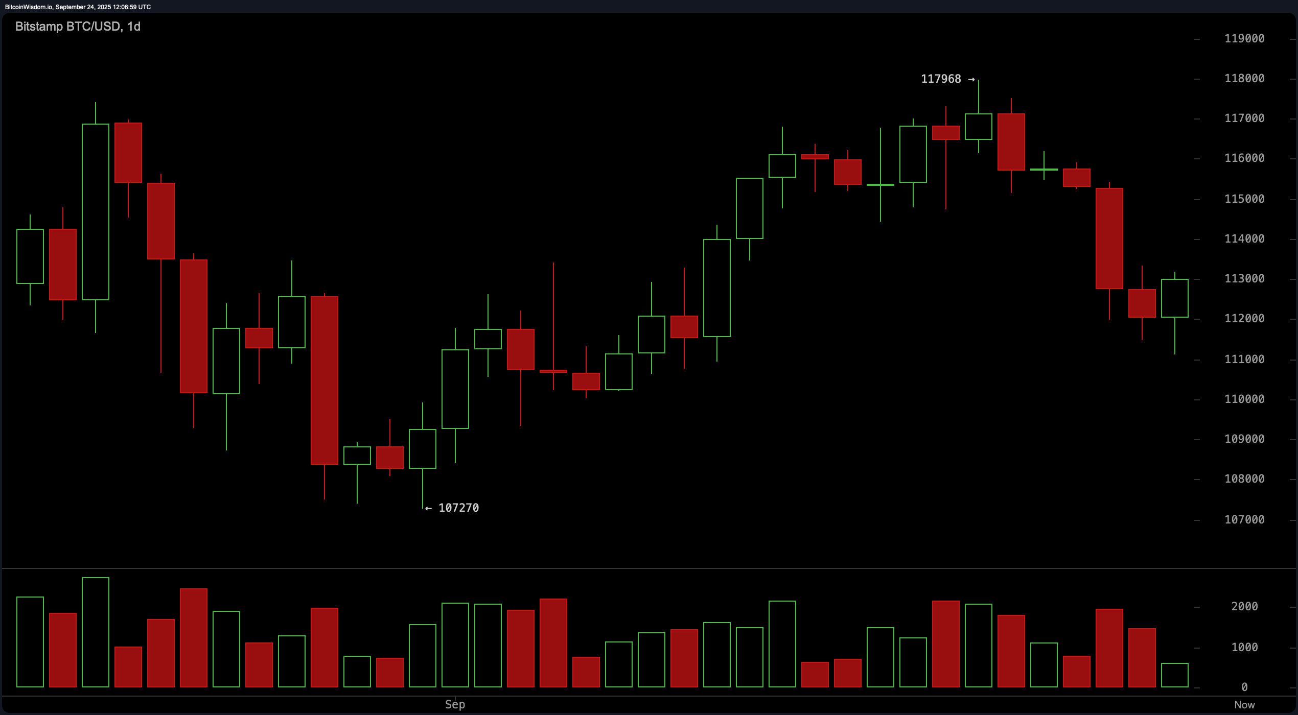 Escorregar abaixo de US $ 111.000? Esta recuperação é um gato morto saltar em uma fantasia de touro. Volume suave, osciladores irritados estão à espreita. Prossiga com cautela ou se torne um meme. 🐻⚠️