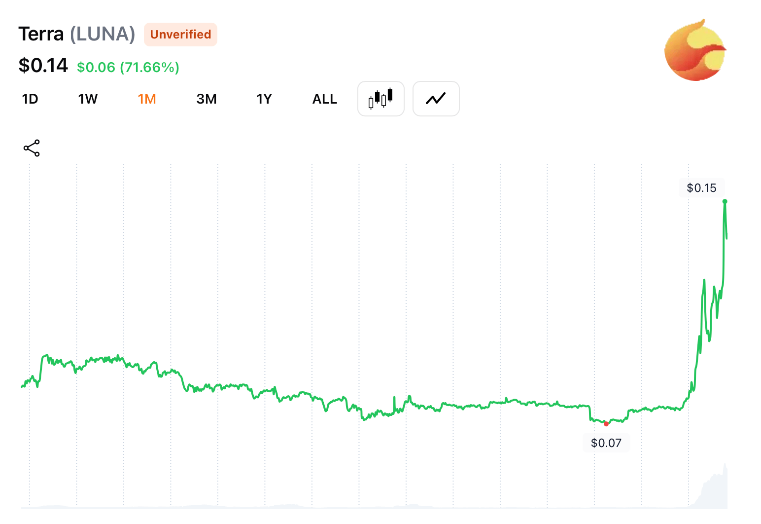 E o que as pessoas pensam? Bem, alguns têm esperança de que esses fantoches dançando sobre as cinzas possam ser reais. Luna classic (LUNC) disparou 191% em duas semanas, acrescentando outros 40% hoje porque, aparentemente, aspirar tokens baratos é um esporte agora.