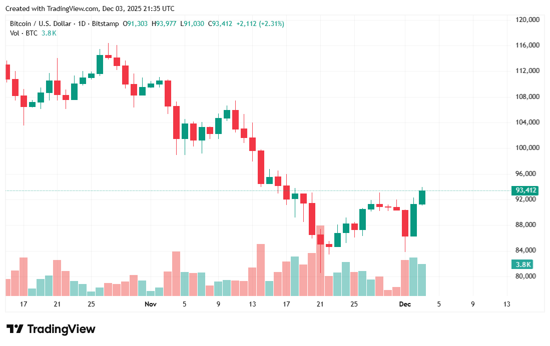 Em uma reviravolta bastante curiosa, o Bitcoin quase atingiu a marca de US$ 94 mil, já que o fraco relatório de empregos parecia empurrar a possibilidade de um corte na taxa de juros pelo Fed para o reino do muito provável.