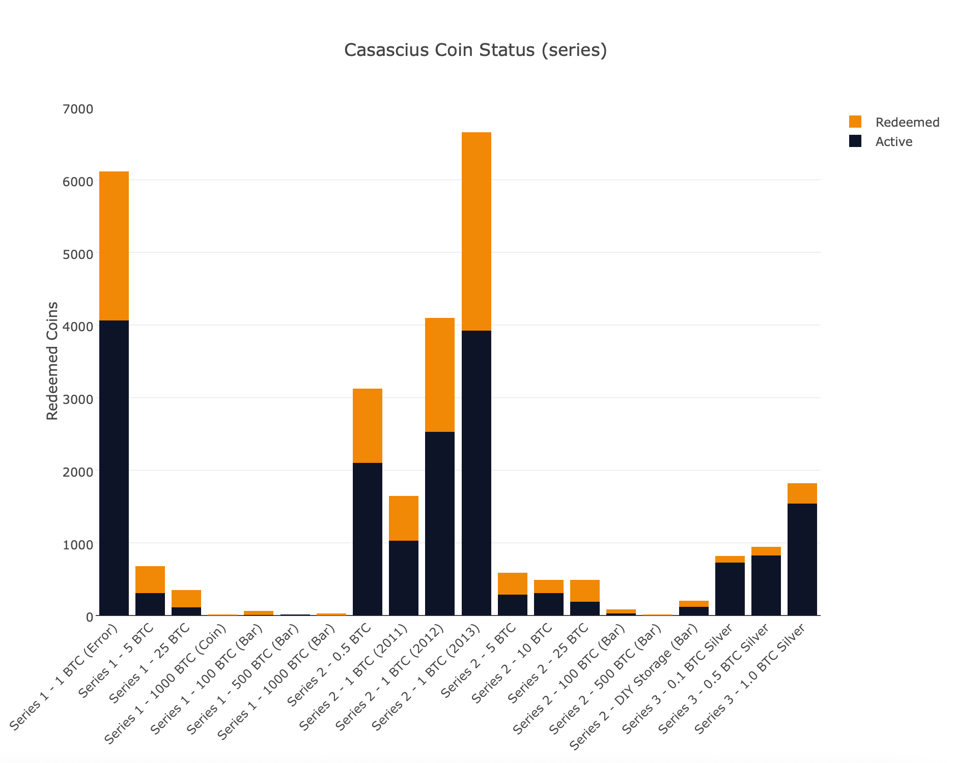 Para aqueles com apetite pelo mito, as lendárias barras de 1.000 BTC permanecem envoltas em abstinência quase total: apenas 16 existem e dois perseveram, intocados pela ganância mortal ou pelas autoridades fiscais. A última vez que essa besta foi aberta, o ano foi 2014, e o mundo talvez tenha sido menos cansado. Nesse grande experimento de Casascius, 27.929 moedas e barras surgiram; 18.042 ainda se recusam a capitular, embora cerca de 20 tenham perdido seus hologramas apenas em abril – à prova de que, quando a tentação chama, até os adesivos de segurança tremem.