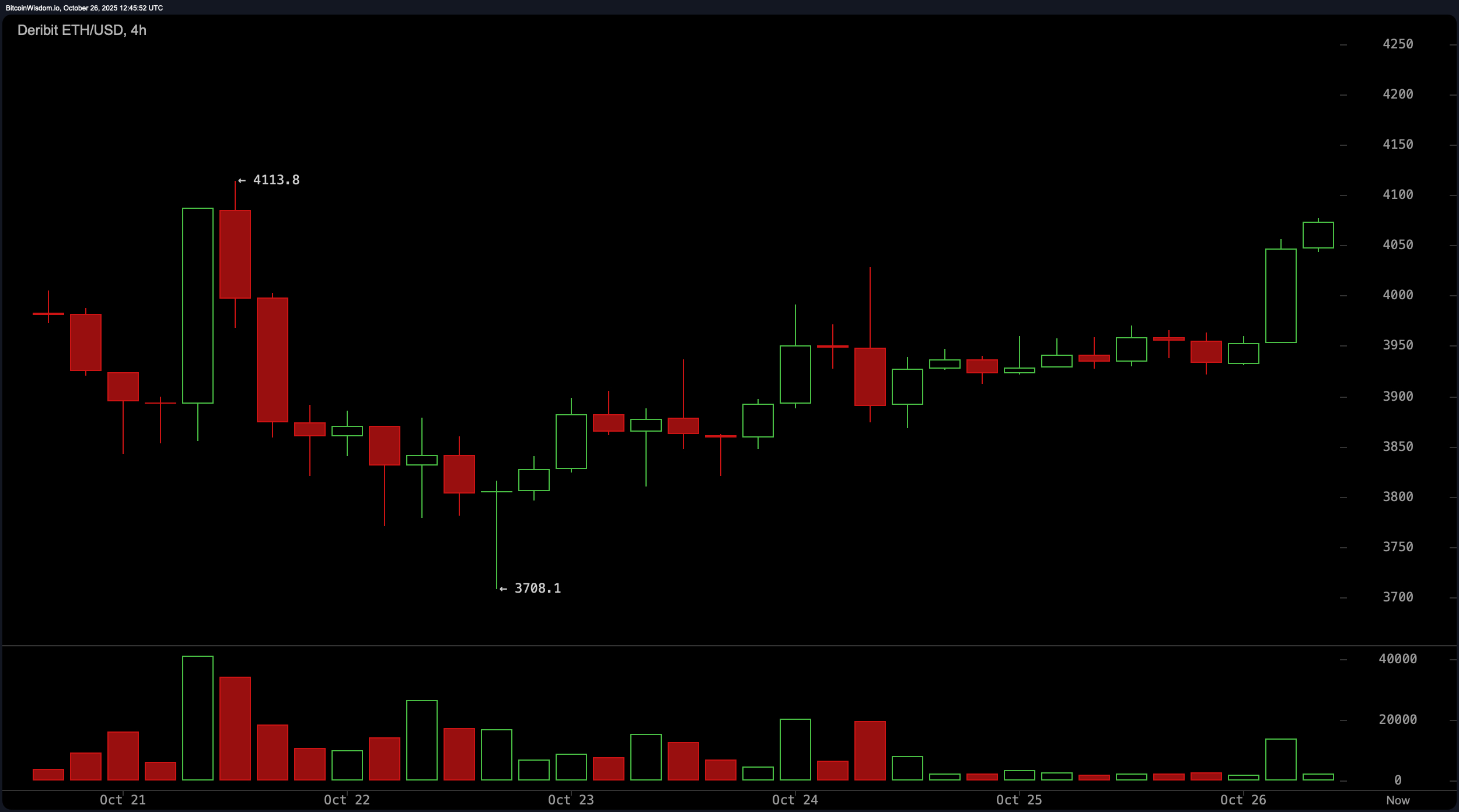 Ethereum, no domingo, 26 de outubro, está à beira do precipício da grandeza, com US$ 4.070 por unidade, oscilando dentro de uma faixa intradiária de US$ 3.926 a US$ 4.081,90, enquanto sua carteira está repleta de US$ 16,27 bilhões em volume de negócios e uma capitalização de mercado orgulhosamente em US$ 489 bilhões. Este barco dos sonhos digital está testando a temida resistência aérea com vim renovado, embora sua tendência de longo prazo continue sendo uma mistura confusa de sinais técnicos que podem ou não resultar em uma decisão importante para a vida do seu portfólio.
