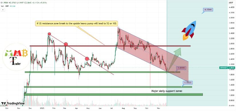 XRP se recupera acima de US$ 2 em meio a mudanças no sentimento do mercado