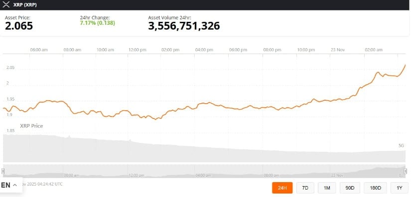 XRPUSD, aquele flerte caprichoso, retornou brevemente à marca de US$ 2,00 após uma semana de flertes com US$ 1,83. AbsGMCrypto, um autoproclamado oráculo de ciclos, atribui isso a pretendentes institucionais e ao sinal verde regulatório dos EUA, embora o preço tenha atingido apenas US$ 2,04 antes de recuar como um convidado em uma festa que esquece seu próprio nome.