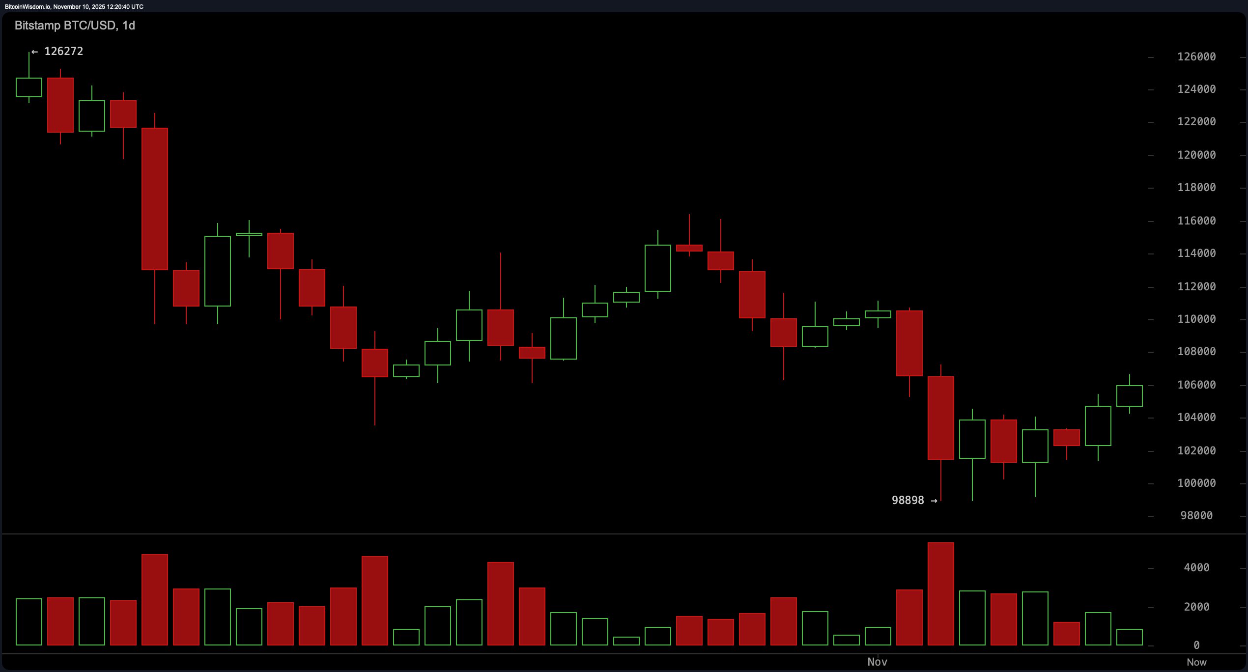 O Bitcoin entrou em cena em 10 de novembro como uma diva em uma loja de descontos, exibindo um preço de US$ 105.950 e um valor de mercado de US$ 2,11 trilhões. Com um volume diário de negociação de US$ 70,67 bilhões e uma faixa intradiária que oscilou de US$ 102.061 a US$ 106.623, os gráficos pareciam um bufê de confusão de sinais mistos do tipo “tudo o que você puder comer”. 🍱💹